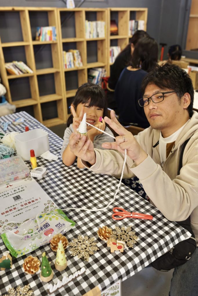 子どもたちはツリーやカスタムクレヨン、キーチェーンを作ったり、みかん詰め放題や射的を楽しんで、わいわい賑やかな一日となりました。