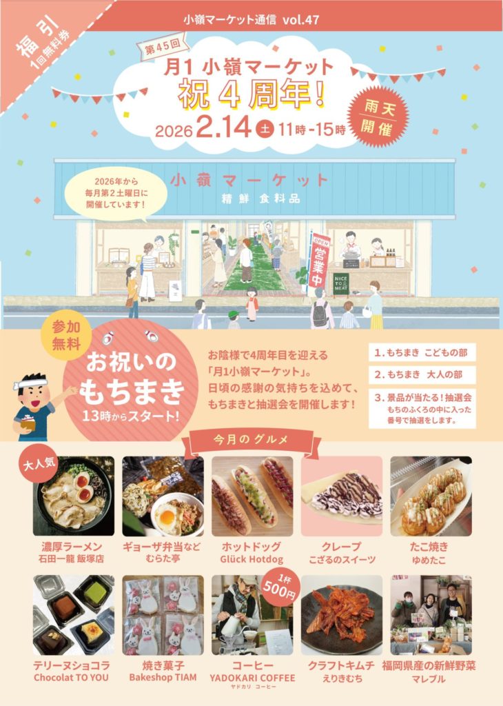 2026年2月で、月1小嶺マーケットの開催も4周年を迎えます。