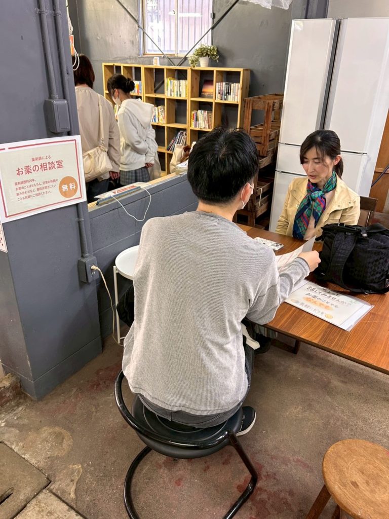 「まちのほけん室」と題して看護師さんによるハンドマッサージコーナーに加えて現役薬剤師さんによるお薬の相談コーナーができました。